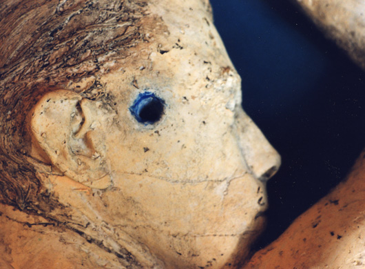 (Moulage sur corps humain. Résine plastique colorée et fibre de verre.)